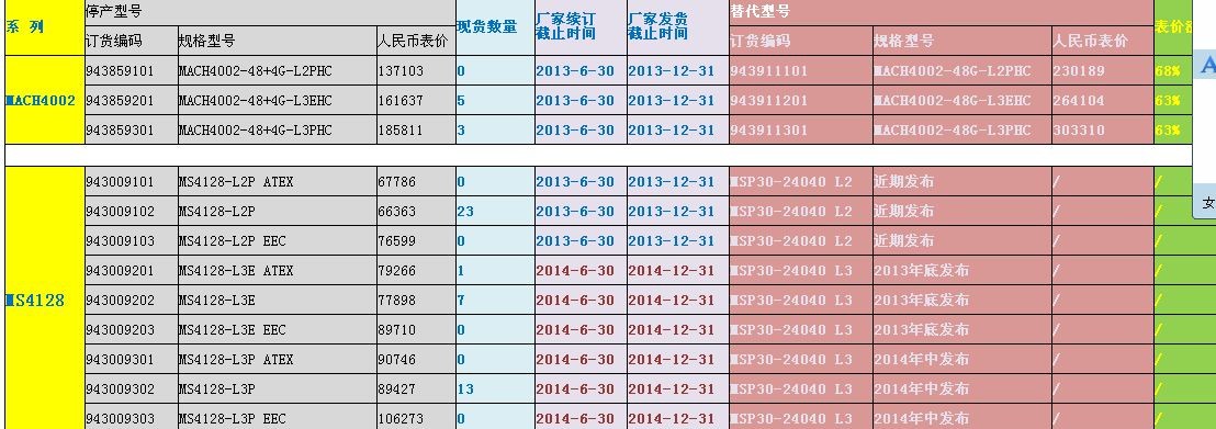 赫斯曼MS4128系列 和MACH4002-48+4G 系列 將于2013年6月30 日停產(chǎn),(belden 網(wǎng)站已公布),請(qǐng)留意客戶需求。