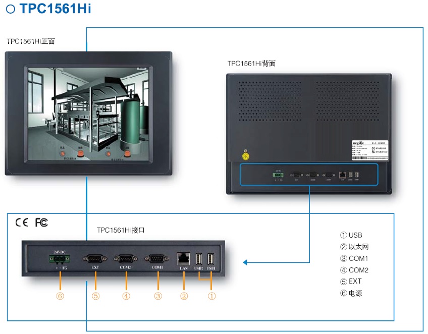 15寸,高亮度TFT液晶屏,分辨率1024*768,八線制電阻式觸摸屏,高檔鋁合金結構,工業(yè)級低功耗CPU400MHz,64M內(nèi)存,64M閃存,4個串口:1*RS232隔離接口,1*RS232/RS485隔離接口(可選),擴展口:2*RS232隔離接口,2*USB接口,1*以太網(wǎng)接口 24V DC電源輸入,基本配置,WinCE.NET,MCGSE無限點(運行版),性能:工業(yè)三級. |