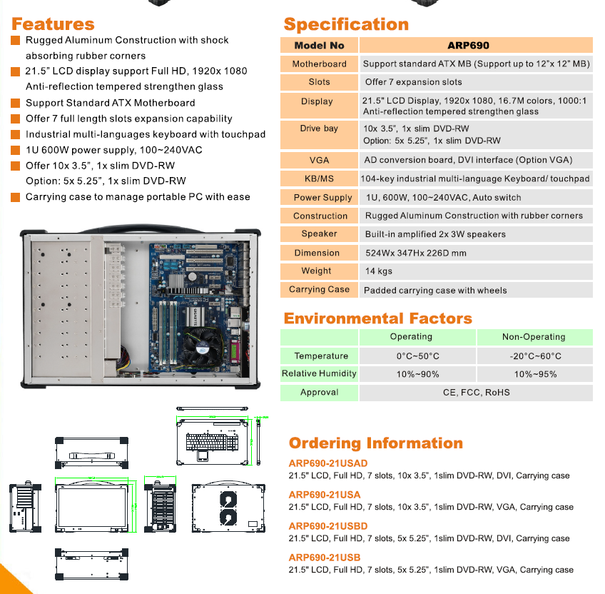 便攜服務(wù)器ARP-690高清多硬盤(pán)21.5寸大屏幕高性能服務(wù)器