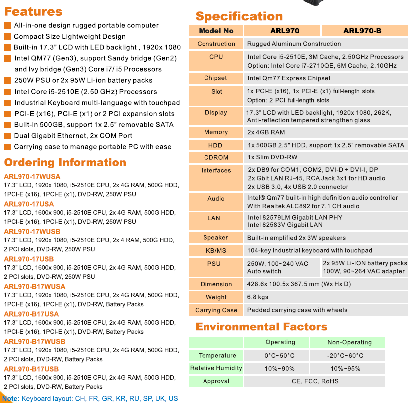 便攜服務器和便攜圖形工作站支持帶電池工作ARP-970和ARL-970