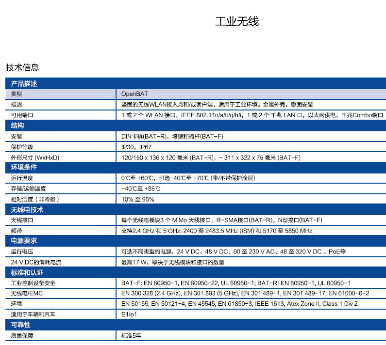 這些接入點可用作客戶端、路由器和網(wǎng)橋,采用 IEEE 802.11ac 技術(shù),向后兼容 a/b/g/n 標準。BAT867-R 采用加固型設(shè)計,確保符合具有挑戰(zhàn)性的要求和批準,適用于苛刻的工業(yè)環(huán)境。