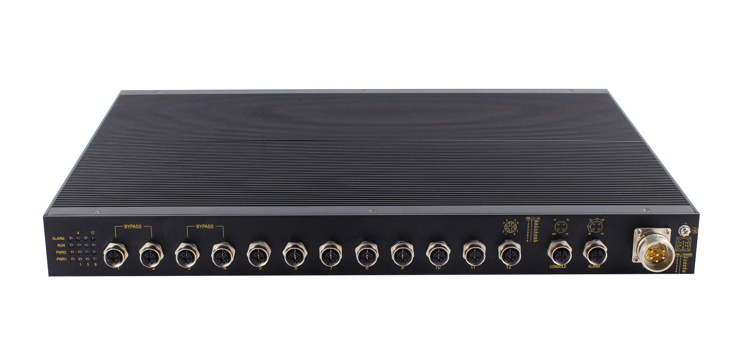支持12路千兆以太網(wǎng)M12接口,1路M12Console口,1路M12告警接口,1路M23電源接口;