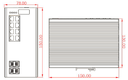 卡軌交換機(jī),8 千兆電口 4 千兆單模 LC 光口,單電源,110/220VAC/DC輸入 |
