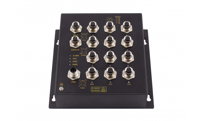 ■ 支持12個M12千兆以太網(wǎng)接口,一路M12繼電器告警輸出,一路M12電源接口,一路M12 Console配置接口;