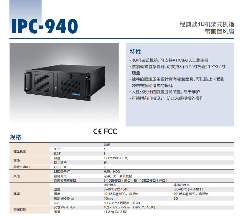 經(jīng)典款4U機架式機箱,帶前置風扇