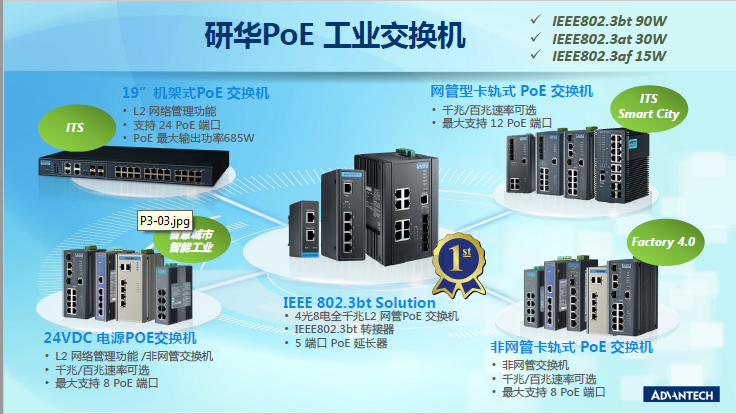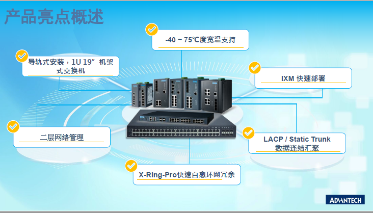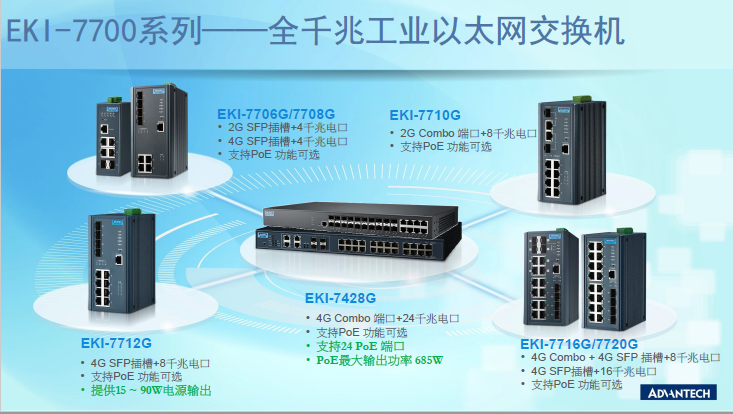 研華提供多種工業(yè)以太網(wǎng)交換機和光電轉(zhuǎn)換器,從快速以太網(wǎng)到千兆以太網(wǎng),從雙絞線到光纖及PoE產(chǎn)品。研華EKI-系列網(wǎng)管型工業(yè)以太網(wǎng)交換機采用 X-Ring 環(huán)網(wǎng)技術(shù),10ms的快速自愈時間,保證數(shù)據(jù)通訊的可靠度。 此外,其穩(wěn)固設(shè)計、寬溫性、導(dǎo)軌式安裝以及12~48 VDC 的冗余電源輸入等特性,廣泛應(yīng)用于嚴(yán)苛環(huán)境的工業(yè)應(yīng)用中。