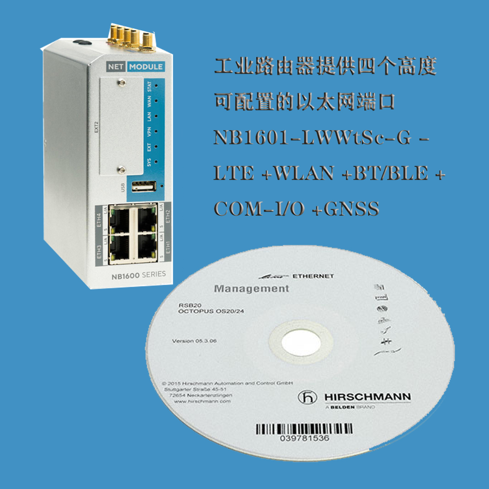 作為一項(xiàng)特殊功能,工業(yè)路由器提供四個(gè)高度可配置的以太網(wǎng)端口。它還配備了數(shù)字 I/O、串行接口、GNSS 接收器和一個(gè) USB 2.0 端口。此外,還有一個(gè) LTE 模塊和一個(gè)小型 WLAN 接入點(diǎn)。