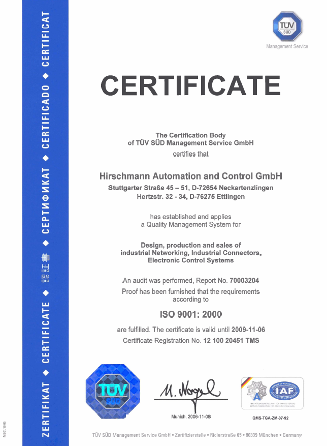 Hirschmann德國(guó)赫斯曼ISO9001認(rèn)證