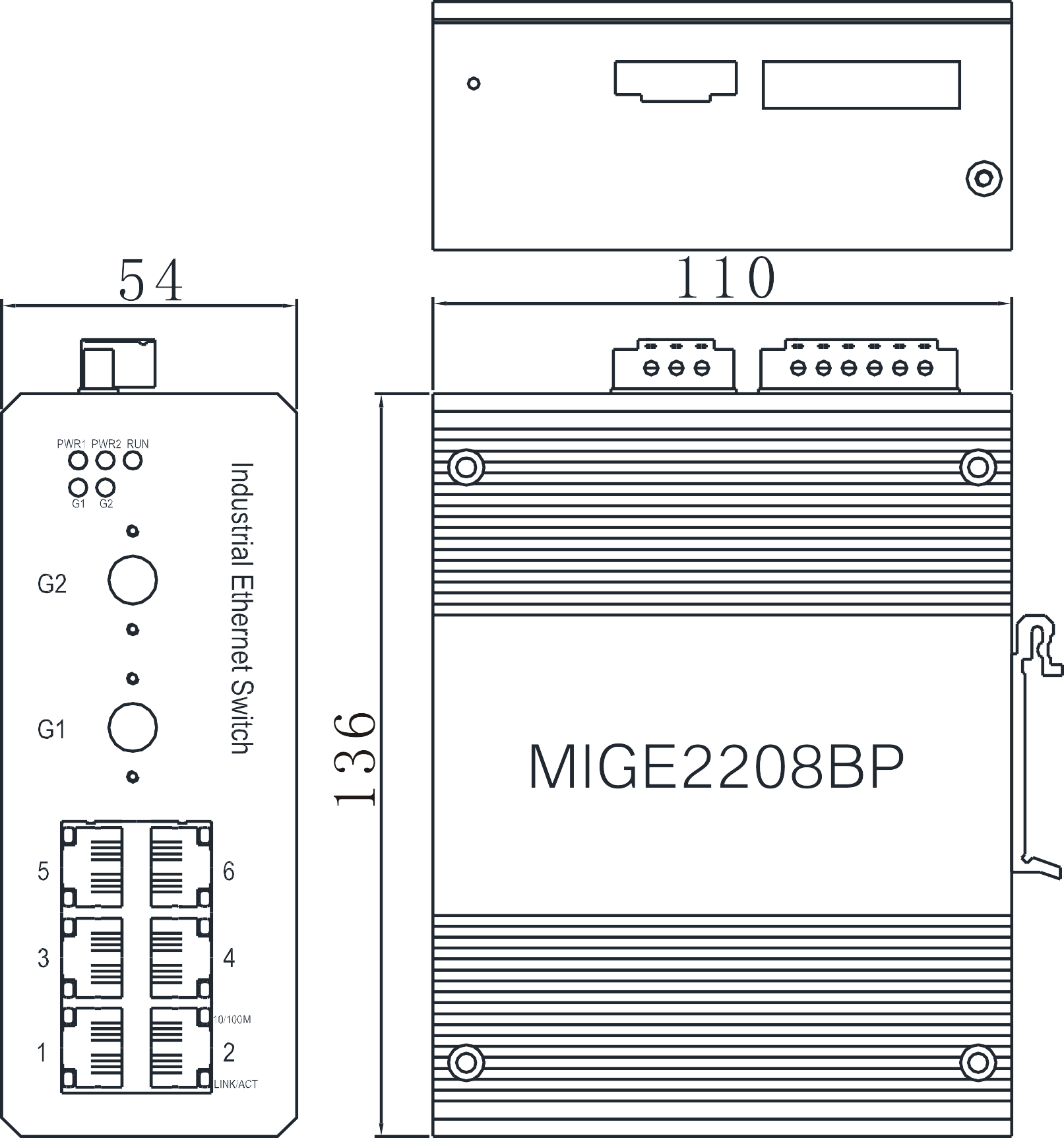 | 例如:MIGE2208BP-2GTS-SC20: 2個(gè)千兆単纖雙向SC光口,傳輸距離20km,6個(gè)百兆電口,單電源DC12~48V |