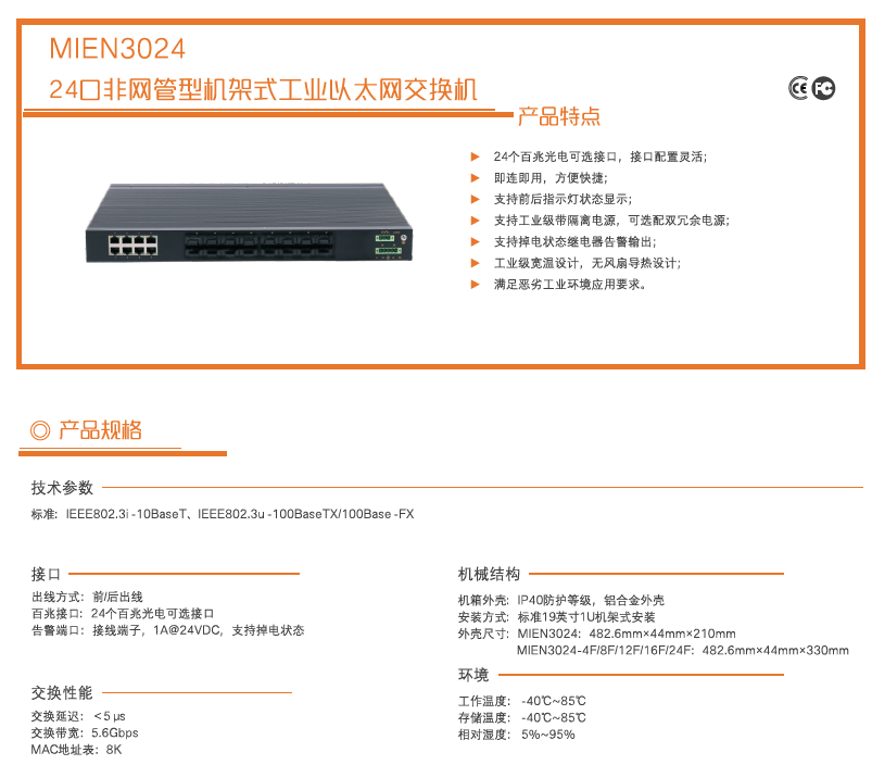 MIEN3024-AD220非網(wǎng)管增強(qiáng)型機(jī)架式工業(yè)以太網(wǎng)交換機(jī)24百兆口
