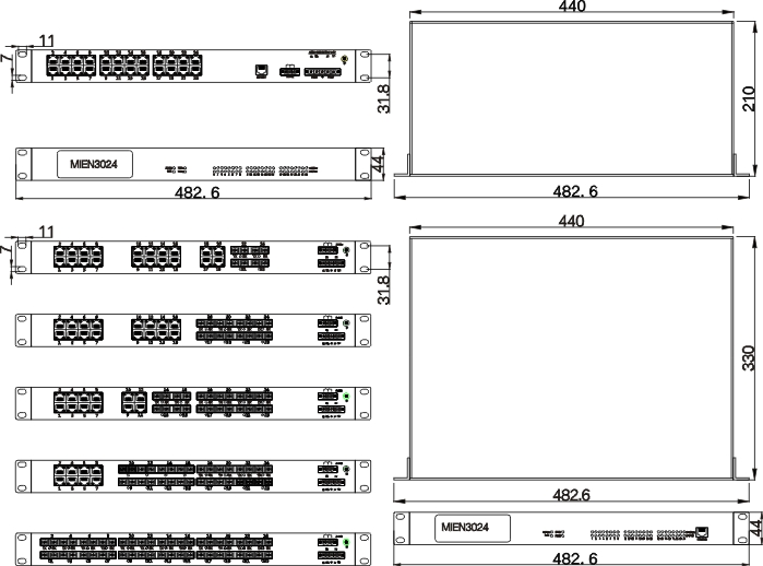 MIEN3024-12/16/24S/M  482.6mm×44mm×330mm (W×H×D)