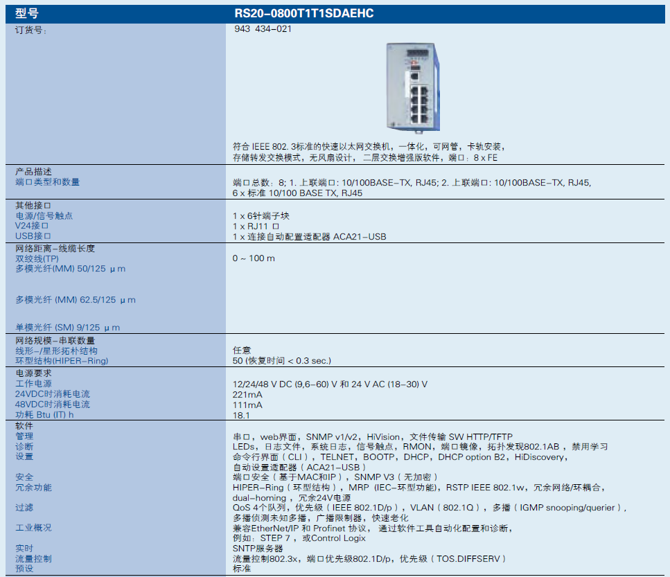 赫斯曼交換機RS20-0800T1T1SDAEHC