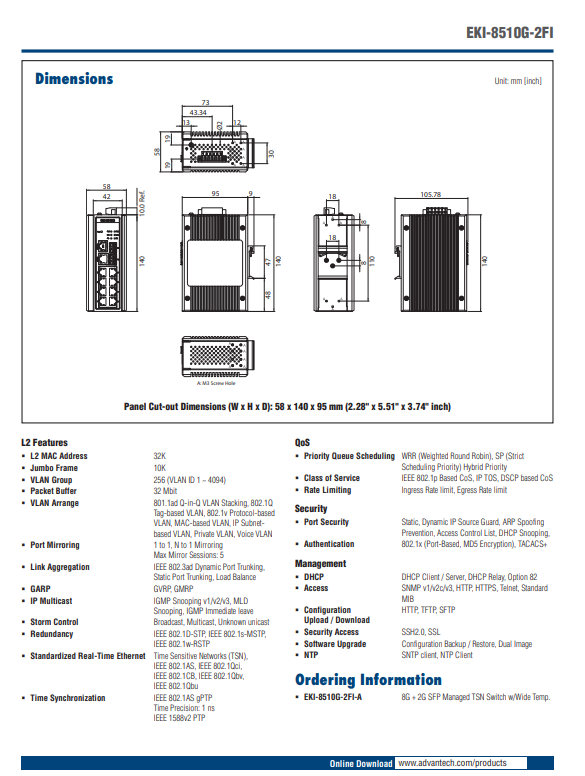 研華工業(yè)交換機(jī)EKI-8510G-2FI 8G + 2G SFP 網(wǎng)管型TSN交換機(jī)