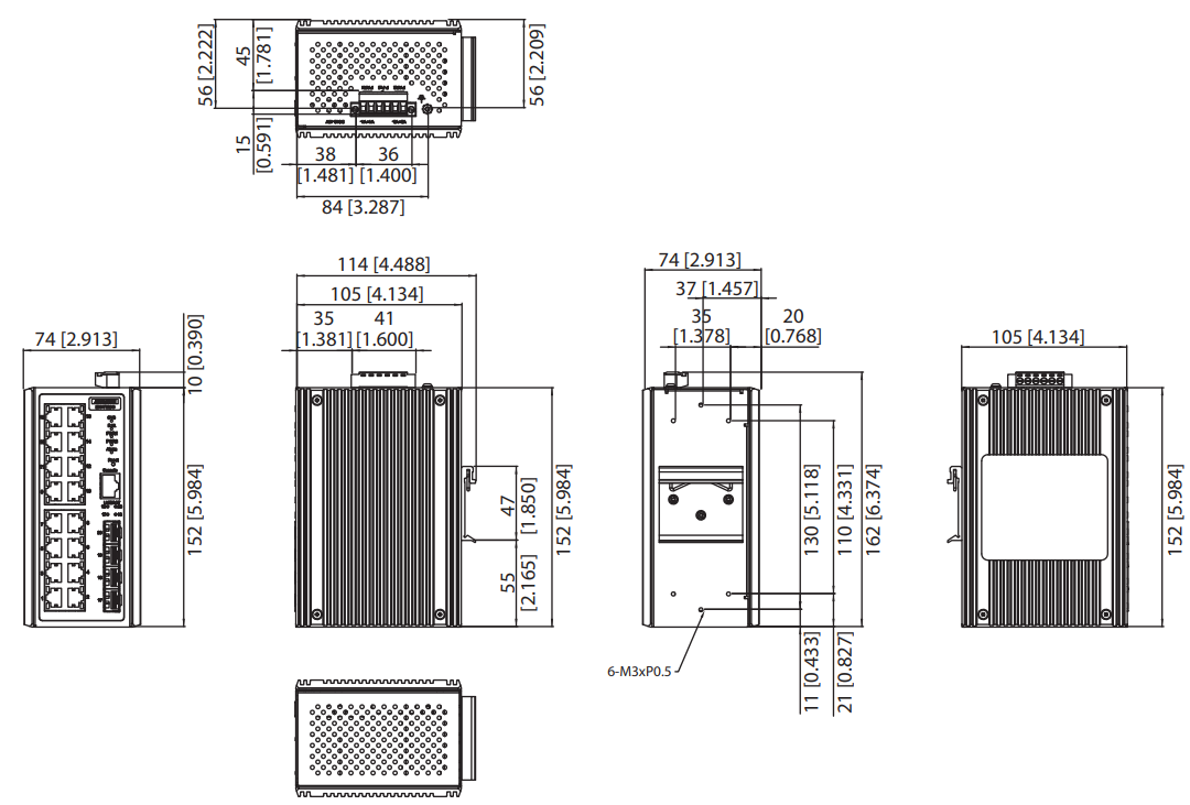 74 x 152 x 105 mm (2.91 x 5.98 x 4.13)