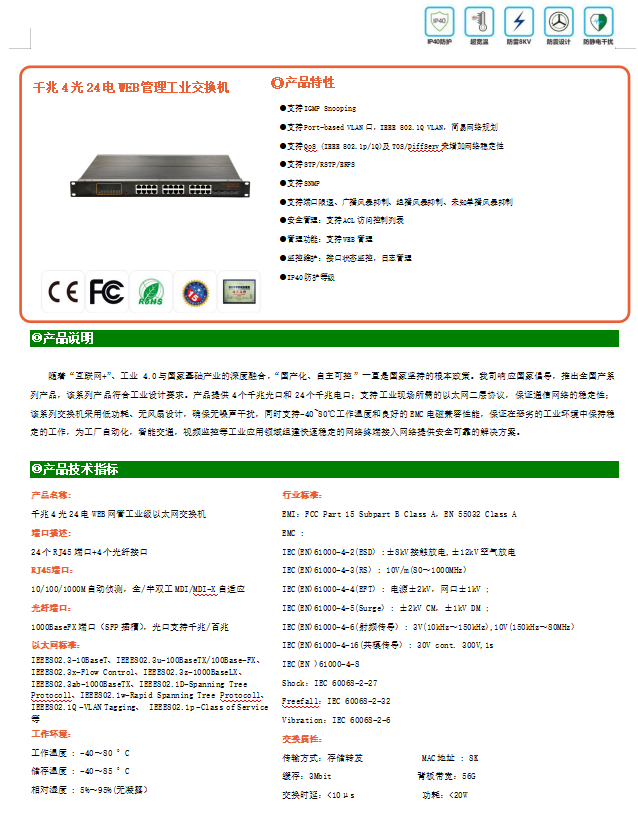 產(chǎn)品描述:HS4424G-4SFP-24TX千兆4光24電WEB管理工業(yè)交換機(jī)