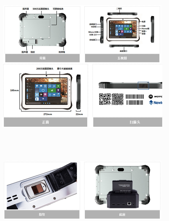 豐富配件,武裝出更專業(yè)的設(shè)備 增加背夾手托設(shè)計(jì),跟舒適的持握手感,防止意外跌落。平板底部有磁吸直插觸電,可與鍵盤或可充電底座配合使用,全方位接口支持(RJ45,擴(kuò)展三個(gè)USB口)即插可用。預(yù)留筆槽設(shè)計(jì),支持電容手寫筆,滿足用戶對(duì)繪畫、文字批注的使用需求。