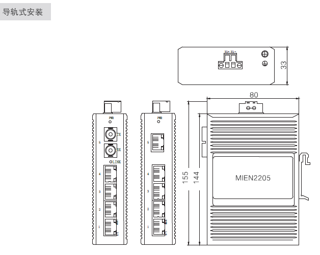 MIEN2205是一款非網(wǎng)管型卡軌式工業(yè)級以太網(wǎng)交換機(jī),采用工業(yè)級鋁合金外殼、無風(fēng)扇設(shè)計(jì),在電磁兼容特性方面具有良好的性能。在接口配置上提供5個(gè)百兆以太網(wǎng)接口,支持1光4電和全5電接口模式,為用戶提供光纖以太網(wǎng)長距離傳輸或低層數(shù)據(jù)傳輸。
