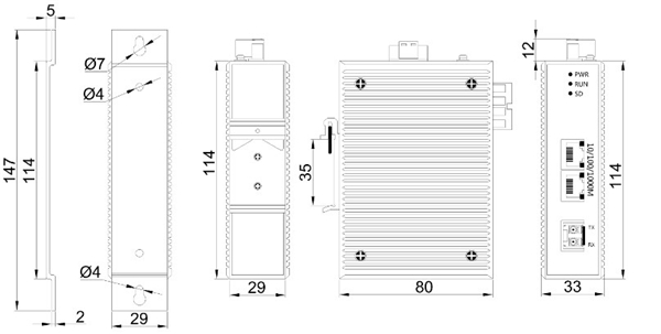 一、行業(yè)應用 電力行業(yè):變電站自動化監(jiān)控系統(tǒng)、電網(wǎng)自動化監(jiān)控系統(tǒng) 新能源行業(yè):光伏并網(wǎng)集中監(jiān)控系統(tǒng)、風機在線監(jiān)測系統(tǒng) 交通行業(yè):路口視頻集中監(jiān)控系統(tǒng) 工業(yè)廠站自動化行業(yè):綜合監(jiān)控系統(tǒng) 二、工業(yè)級設(shè)計 ◇ 單肋形鋁制機箱散熱表面設(shè)計,無風機高效散熱 ◇ 工業(yè)級電源設(shè)計,DC12~48V寬壓范圍 ◇ 高強度鋁合金外殼結(jié)構(gòu),滿足IP40要求 ◇ 系統(tǒng)能可靠地工作在-40℃~+75℃的環(huán)境中 三、 穩(wěn)定可靠性能 ◇ 提供DIN卡軌式安裝 ◇ 電源具有可靠的過流、過壓保護以及EMC保護 四、 行業(yè)標準、簡單操作維護 ◇ 支持統(tǒng)一的業(yè)內(nèi)以太網(wǎng)標準協(xié)議 ◇ 標配1個千兆光口和2個千兆電口 ◇ 即連即用,簡單快捷的實現(xiàn)以太網(wǎng)通訊功能 五、 功能強大