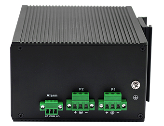 LED指示燈:P1、P2電源指示燈,F(xiàn)AIL電源故障燈, G1、G2千兆光纖指示燈,F(xiàn)1~F4百兆光纖指示燈,POE指示燈,RJ-45指示燈