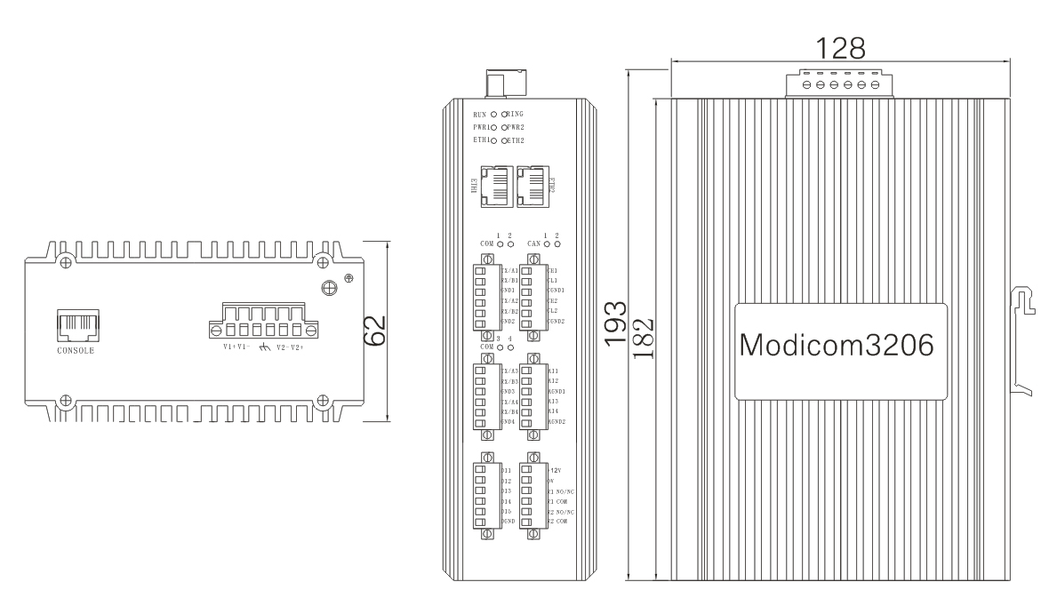 182mm×128.4mm×62mm(長×深×寬),導(dǎo)軌安裝