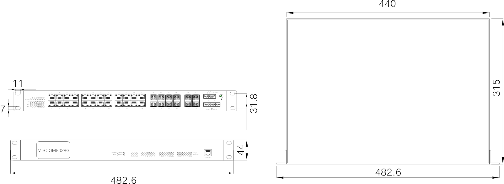 482.6mm×44mm×315mm (W×H×D)