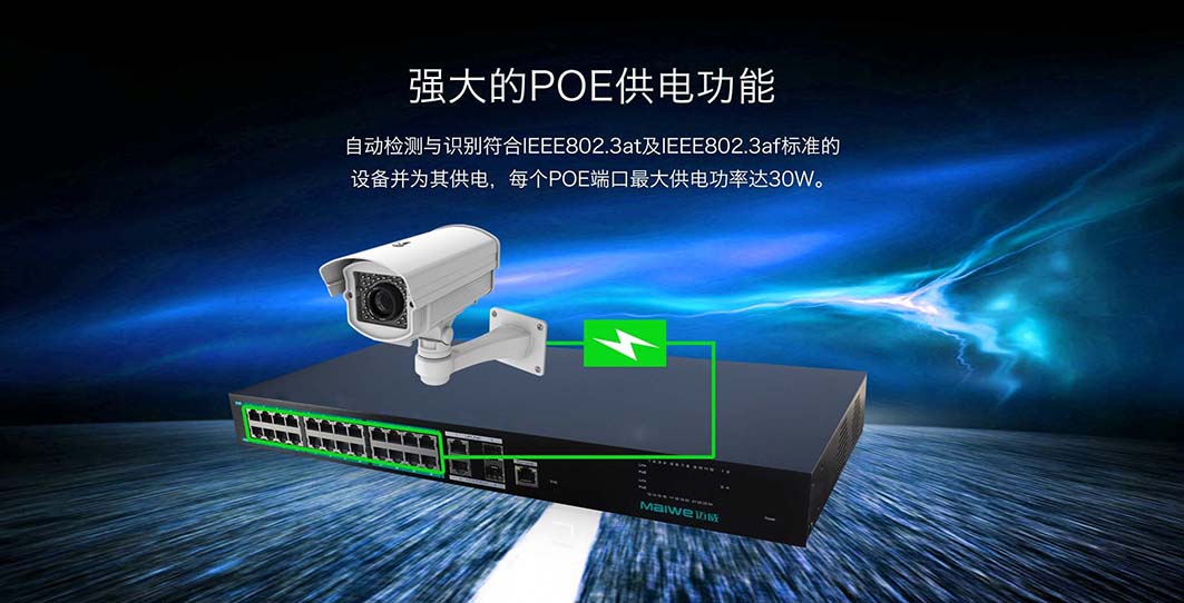 PoE端口可提供功率高達15.4W(af)或30W(at)的供電 |