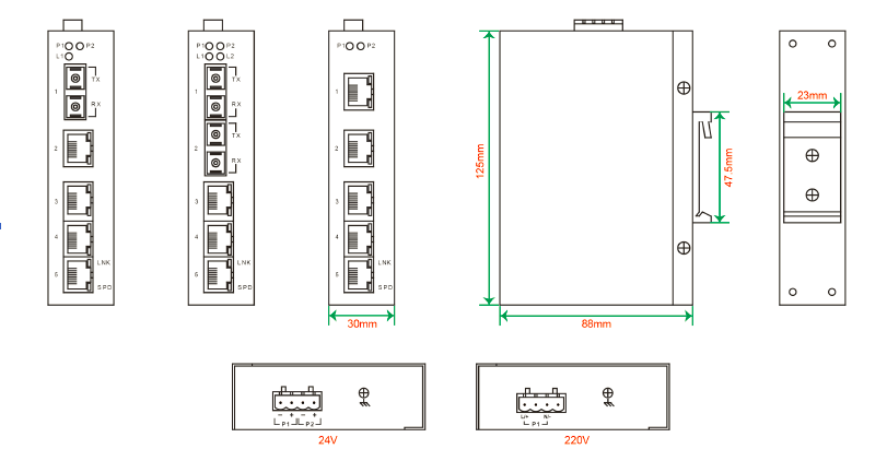 非網(wǎng)管型工業(yè)以太網(wǎng)交換機(jī),4 個百兆電口,1個百兆多模SC 光口,220VAC單電源
