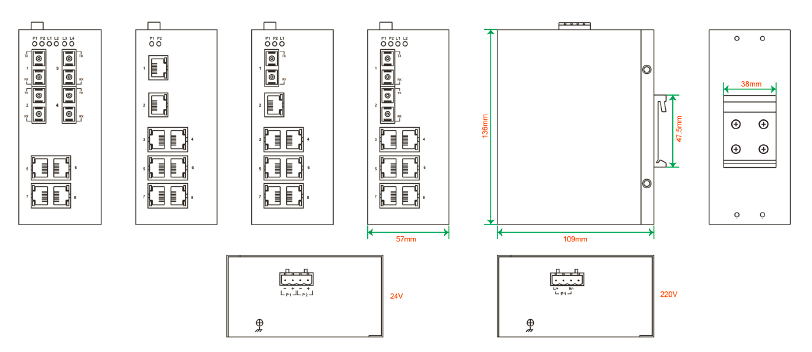 非網(wǎng)管型工業(yè)以太網(wǎng)交換機(jī),5個百兆電口,3個百兆多模 SC 光口,24VDC單電源