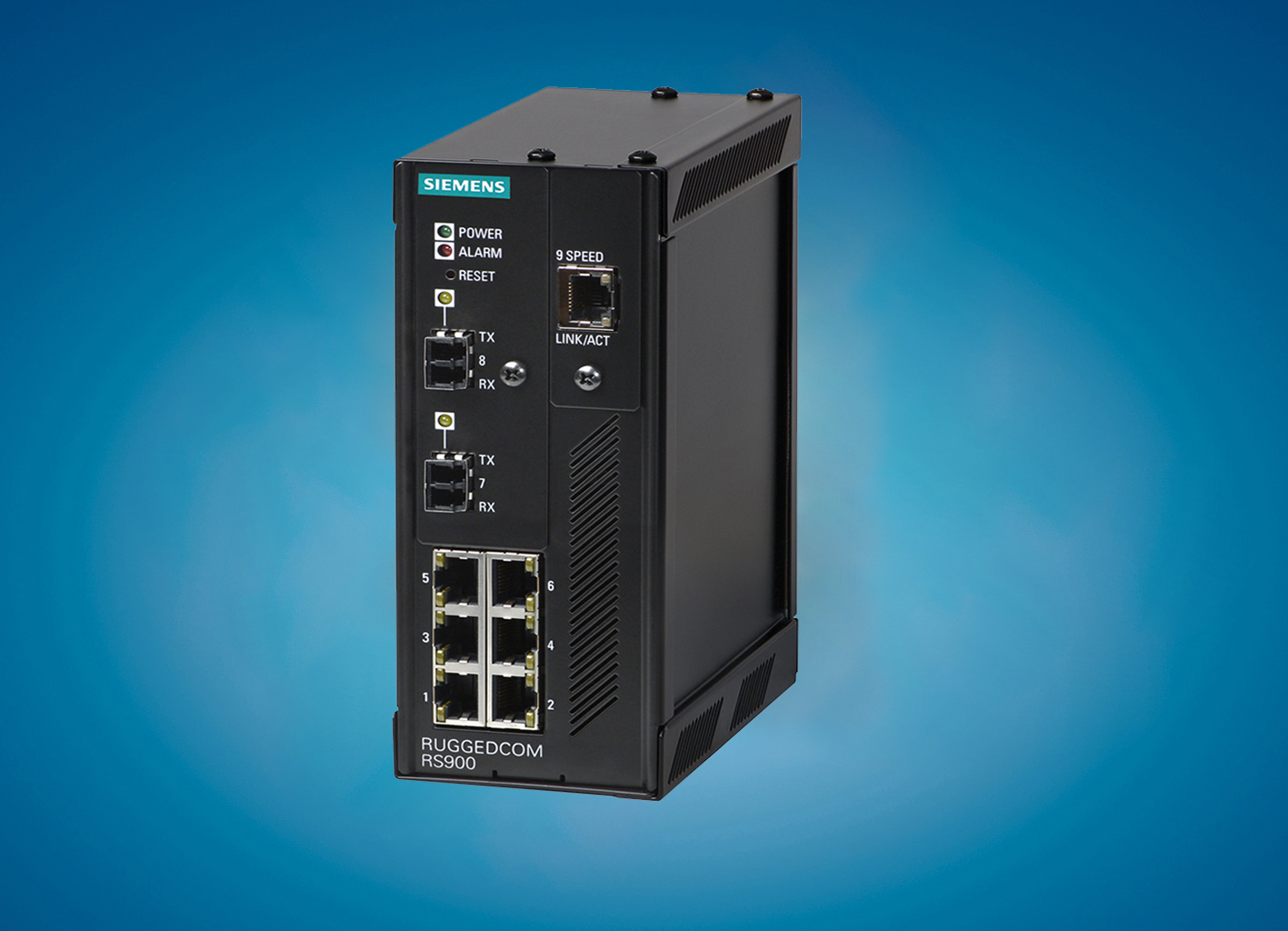 該系列小型化網(wǎng)管型以太網(wǎng)交換機的特點是可選DIN 軌安裝 The RUGGEDCOM RS900 is a 9-port utility-grade, fully managed Ethernet switch designed to operate reliably in electrically harsh and climatically demanding environments.